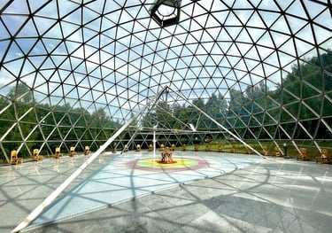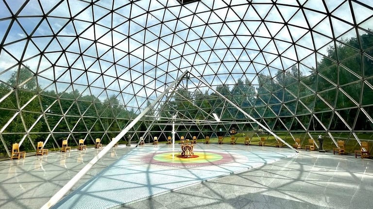 Nutviekstas saulės Dzūkijos miškų apsupty spindi stiklinis kupolas. Kupolo viduje stovi trišonė aliuminio piramidė, o joje – du unikalaus lydinio kryžiai, kurie koncentruoja bei perteikia subtiliąją energiją. Jau keletą dešimtmečių žmonės gausiai lankosi Merkinės piramidės erdvėje, maldos ir meditacijos metu pasisemia jėgų, atgauna dvasinę pusiausvyrą, džiaugiasi pagerėjusia fizine sveikata